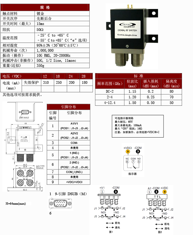 射频同轴继电器也称之为微波同轴继电器,它是由同轴高频接头作为射频引出端的射频继电器,由于同轴高频接头传输的微波信号具有频率高、频带宽、信息量大的特点,所以射频同轴继电器广泛应用于航海、通信、科技等领域的多路通信、中继通信、散射通信、移动通信、卫星通信、雷达系统、导航系统、电子对抗、测量检测等系统中。
